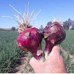 Bolbos de tamanho médio, firmes e de forma arredondada;
