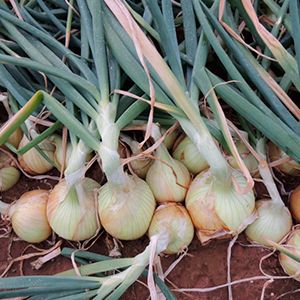- Bolbos uniformes de forma arredondada e coloração amarela dourada;